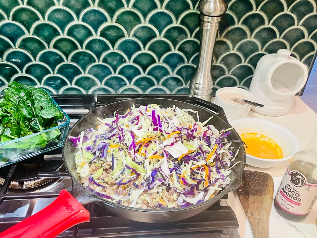 You can also easily turn the skillet meal into taco night with a Siete brand seasoning packet paired with their almond flour tacos & avocados. Another go-to are egg roll bowls (pictured above) with organic ground pork, slaw mix, coconut aminos, ginger & sesame oil. These meals are some of my dinner staples that everyone in the house enjoys…even the 3-year old! I am so excited to share more in-depth health & cooking info, recipes, lifestyle swaps and my favorite brands in upcoming posts!