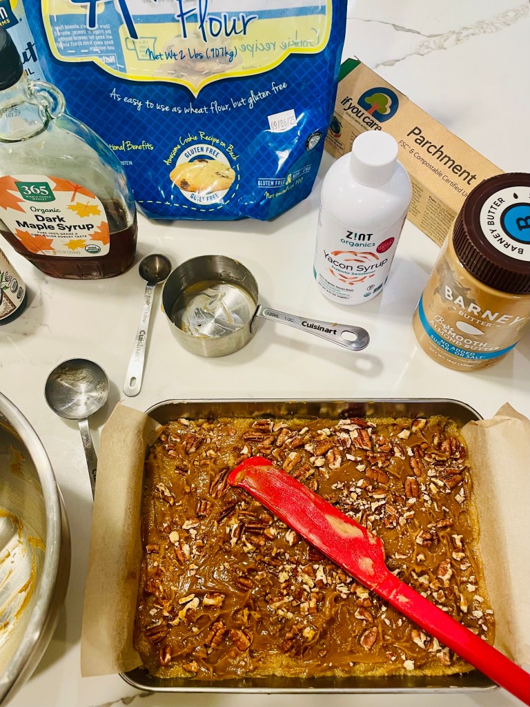 These bars are sooo yummy – you have to try them out! They keep well in the freezer for weeks so you can always grab one when you are needing a sweet fix – although it’s hard for me and my family to keep them around for more than a couple days. Feel free to swap out cashews for peanuts, pecans or almonds if you prefer. I like to swap out some of the maple syrup in the bottom two layers for Yacon syrup. It is a natural sweetener from the yacon root that is very low in sugar and high in prebiotics to feed the good bacteria in your gut. But don’t fret if you don’t want to buy another ingredient – pure maple syrup makes these even more irresistible. And remember to use a good quality nut butter – I have links to some of my favorites. Stick to nut butters that have nuts as the only ingredient (and possibly some sea salt added).